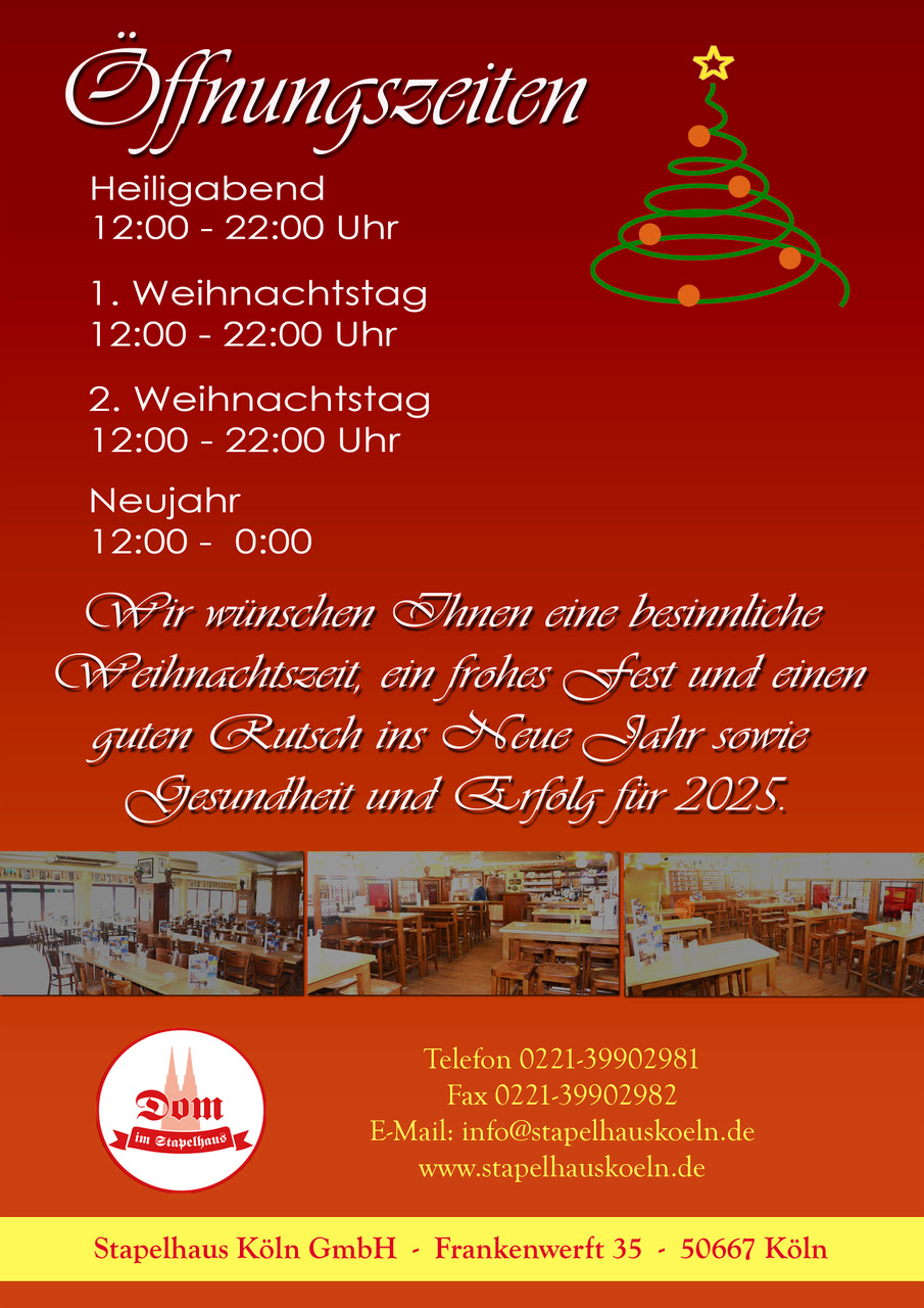Genießen Sie bei uns frisch gezapftes DOM-Kölsch, kölsche Spezialitäten und das urige Köln-Jeföhl in rheinisch-herzlicher Atmosphäre.